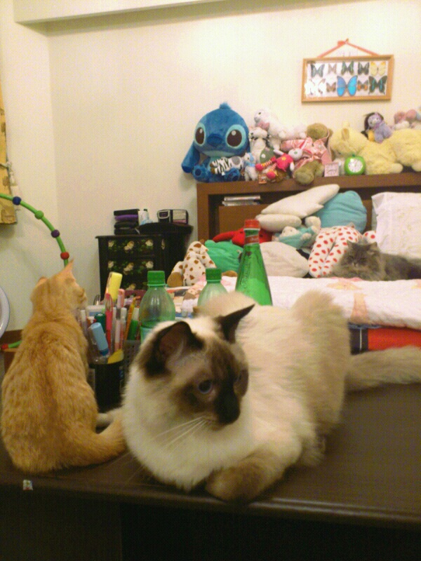 總之呢,被我洗腦成貓派的家教家,目前總共有4隻貓咪,雖然我家因為媽媽曾經放話說有貓就沒有她,以至於我到現在都不敢輕舉妄動,不過反正每天都可以去家教,所以在上課中,最不專心的就是老師了……